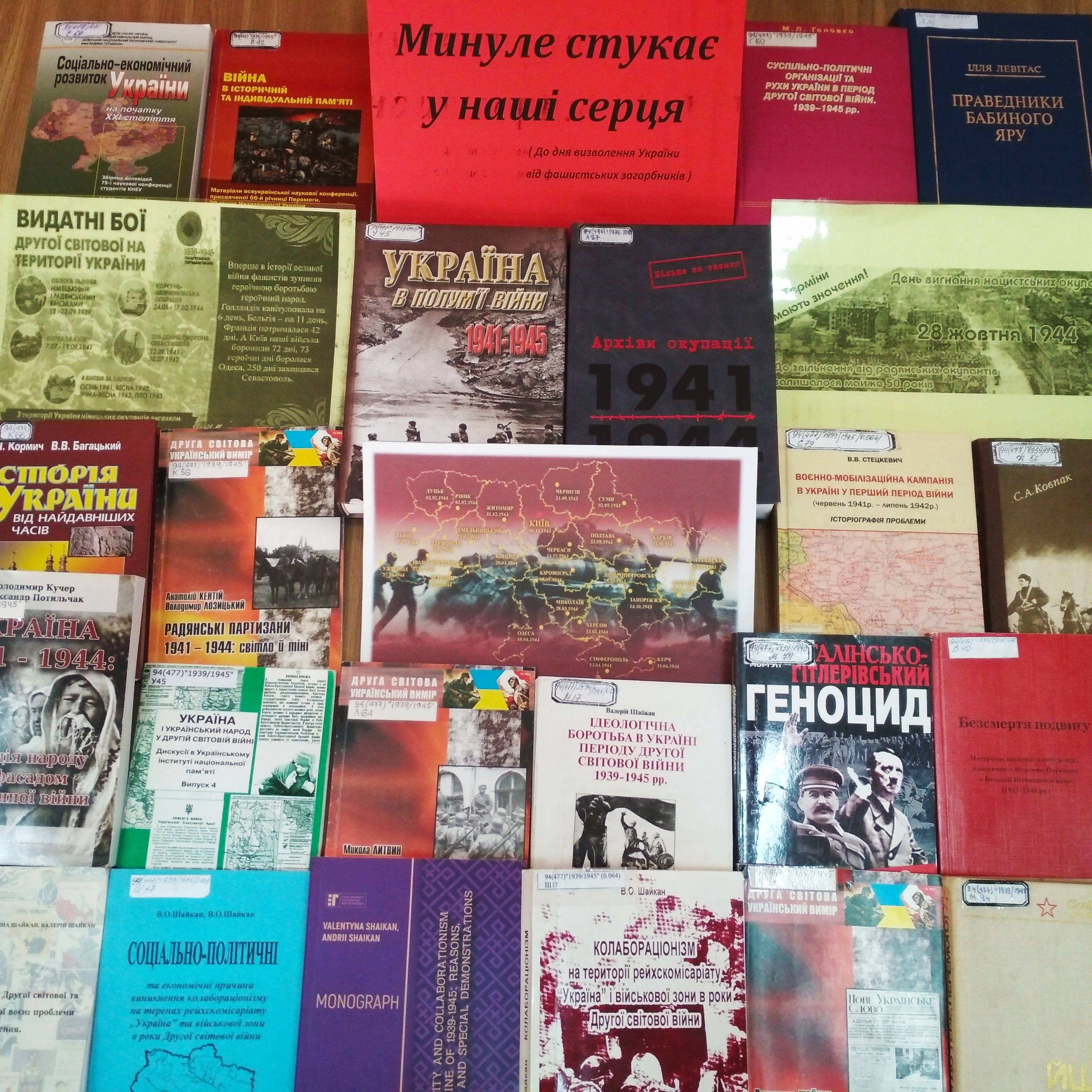 28 жовтня українці відзначають 77-річницю визволення України від фашистських загарбників. Бібліотека ДУЕТ підготувала до цієї дати книжкову виставку «Минуле стукає у наші серця». Пропонуємо ознайомитись зі списком літератури.