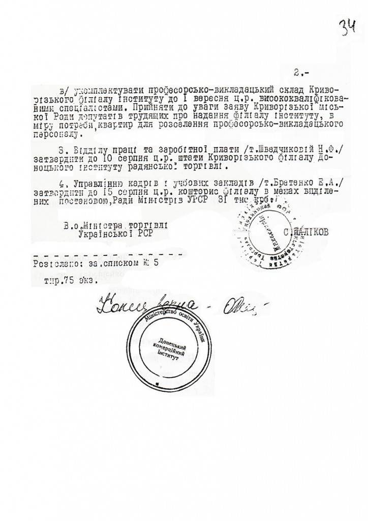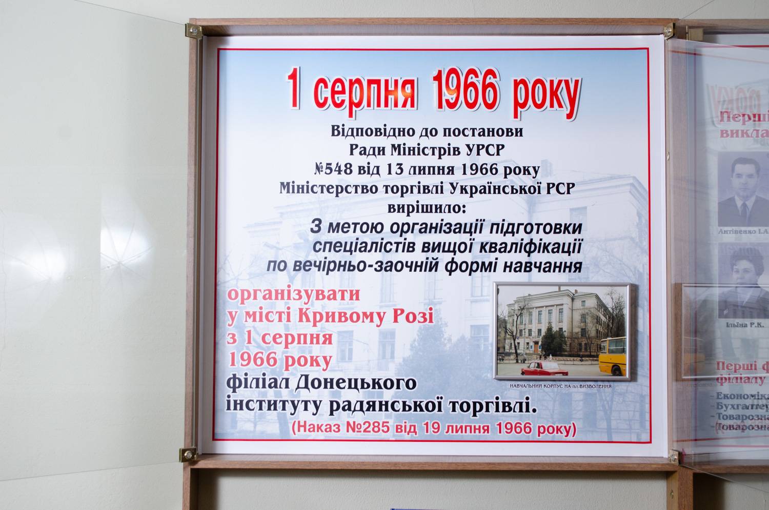 Пам’ятною назавжди стала дата 13 липня 1966 року, коли вийшов наказ Міністерства торгівлі Української РСР про організацію у м. Кривому Розі філіалу Донецького інституту радянської торгівлі.