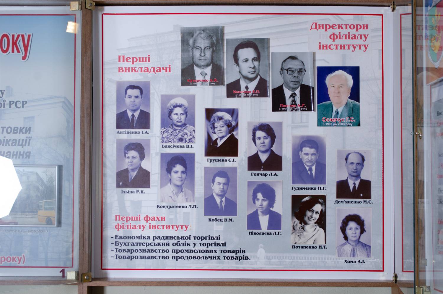 Звертаємо увагу на світлини перших директорів, їхніх заступників, перших професорів, доцентів, завідувачів кафедр, деканів… Під світлинами можна прочитати про те, як виникав інститут, як з часом він змінював свої спеціальності і назви. Першим директором був Альберт Йосипович Кучеренко (1966 р.).