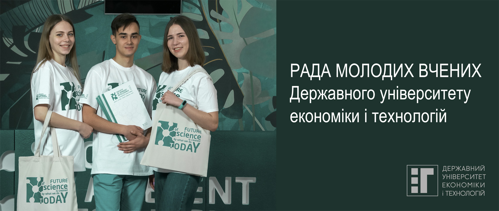 Рада молодих вчених Державного університету економіки і технологій є колегіальним об’єднанням молодих вчених та аспірантів ДУЕТу, яке створено з метою сприяння науковій, інноваційній, винахідницькій та іншій творчій діяльності молодих вчених, представництва, захисту і реалізації професійних, інтелектуальних, юридичних і соціально-економічних прав молодих вчених; сприяння міжвузівській інтеграції молодих вчених.