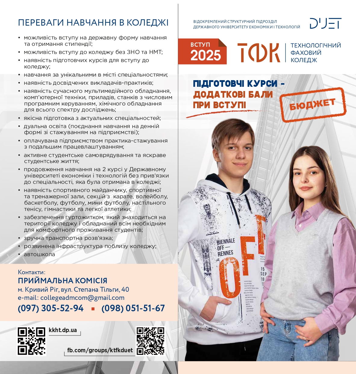 Технологічний фаховий коледж ДУЕТ у соцмережах: