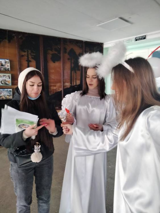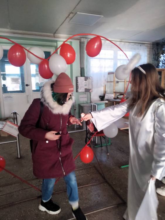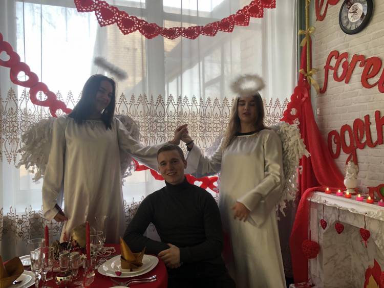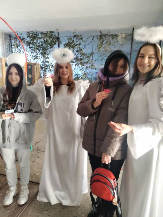 З самого ранку всіх викладачів та студентів зустрічали два янголи з валентинками – передбаченнями. На вході стояло символічне, чарівне серце, пройшовши крізь яке, кожен забував про буденні клопоти та «синдром понеділка». Весела музика лунала в фойє освітнього закладу і якби не дзвоник на першу пару, всі залишилися б на своїх місцях, радісно вітаючи один одного і ділячись враженнями від передбачень помічників святого Валентина – янголів.