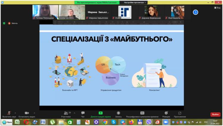 21 квітня 2022 року за сприяння кафедри управління бізнесом ДУЕТ було проведено ще один вебінар, присвячений майбутньому маркетингу в умовах віддаленої роботи.