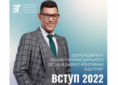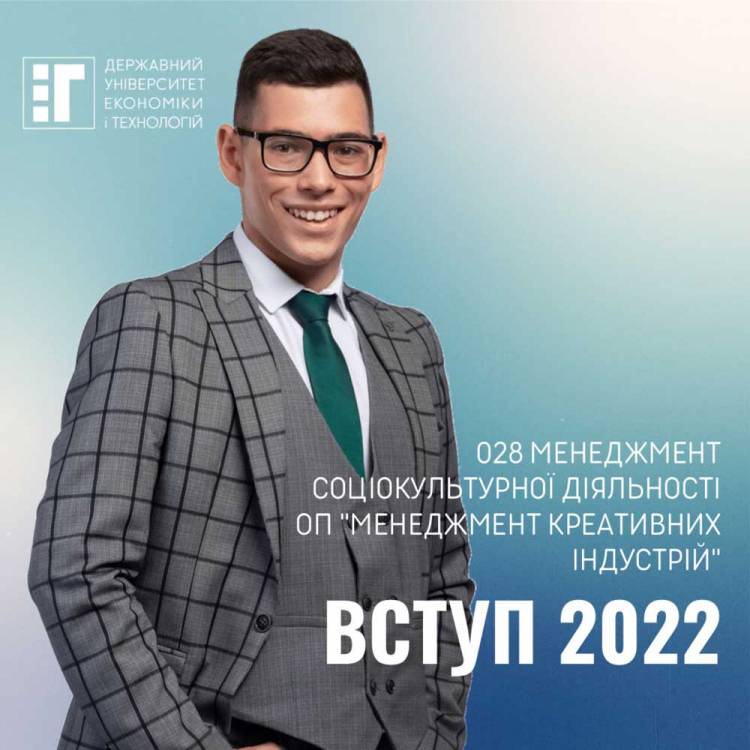 Державний університет економіки і технологій цього року відкриває набір на спеціальність 028 Менеджмент соціокультурної діяльності на освітню програму «Менеджмент креативних індустрій» на перший (бакалаврський) рівень вищої освіти.