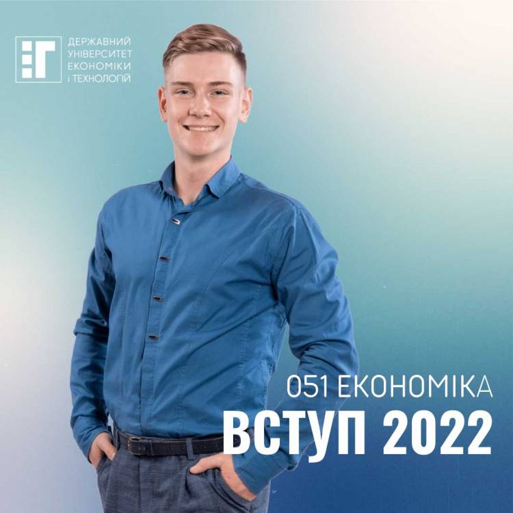 Запрошуємо тебе на навчання до Державного університету економіки та технологій за спеціальністю 051 «Економіка». Отримавши диплом за даною спеціальністю, на тебе чекає посада системного аналітика, великий відсоток ймовірності, що ти станеш успішним менеджером або економістом.