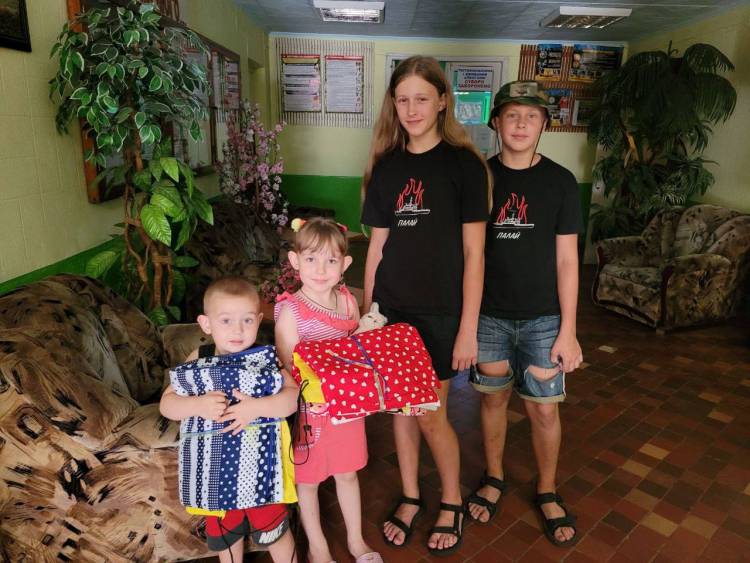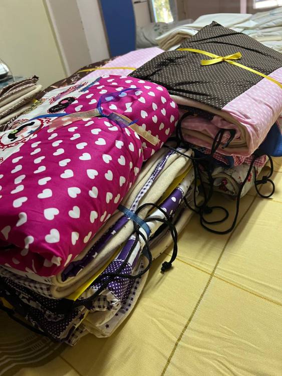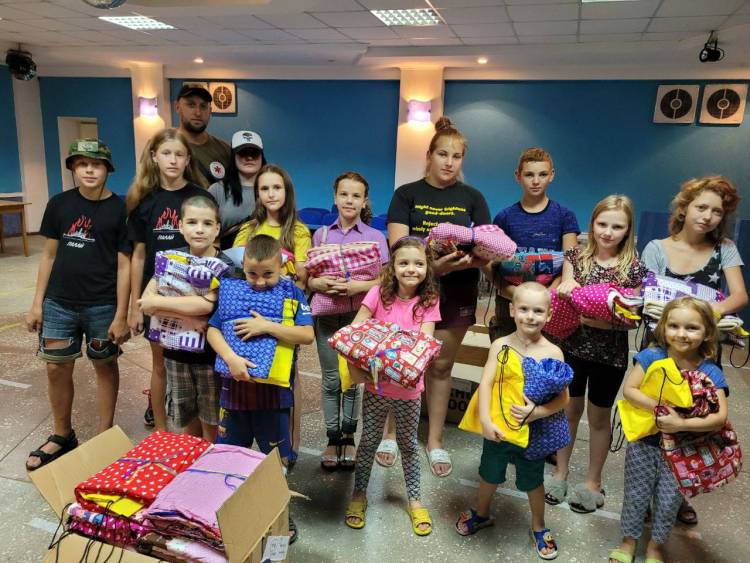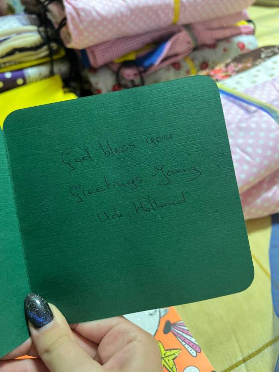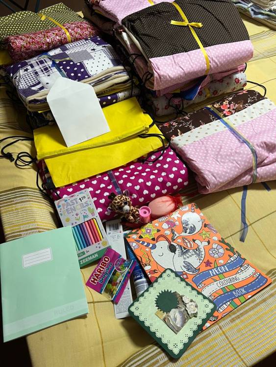 Комплекти для малечі складаються з найпотрібніших речей: зубної пасти, мила, пледів, а також фломастерів з розмальовками та солодощів. Всі комплекти від наших друзів з Нідерландів перев’язані синьо-жовтими стрічкам і у кожному з них всередині листівка з побажанням: «Боже, благослови Вас»