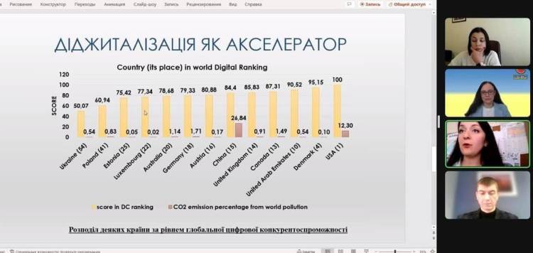 Від нашого інституту спікером була завідувачка кафедри міжнародних відносин Ірина Максимова з результатами неймовірно цікавого дослідження «Синергія цифрової та зеленої трансформації у формуванні кліматично нейтральної економіки».