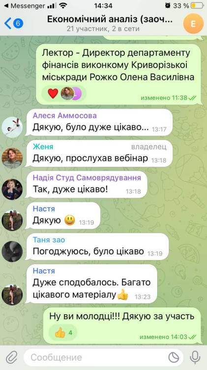 Після закінчення вебінару слухачі мали змогу поставити запитання спікеру, на які отримали досить ґрунтовні відповіді. Студенти також поділилися враженнями після вебінару та висловили подяку лектору за дуже актуальний матеріал, який був і корисний, і цікавий.