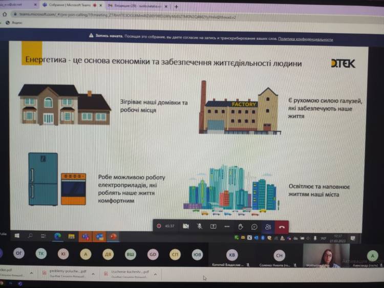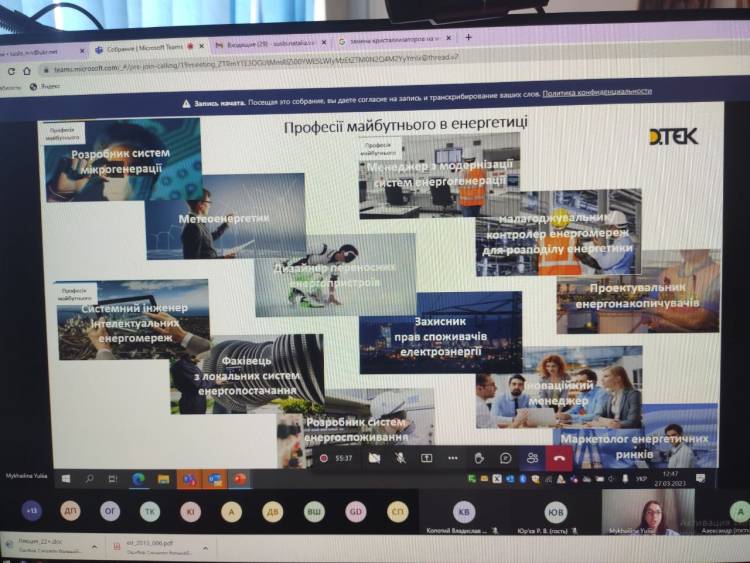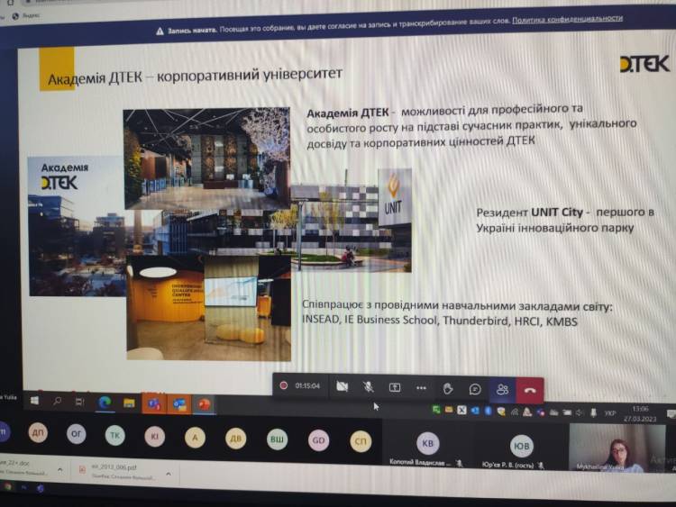 27.03.2023 р. відбулася зустріч студентів випускних груп технологічного інституту спеціальностей 141«Електроенергетика, електротехніка та електромеханіка», 151 «Автоматизація та комп'ютерно-інтегровані технології», 133 «Галузеве машинобудування» та навчально-наукового економічного інституту спеціальності 071 «Облік і оподаткування» з потенційними роботодавцями – компанією ДТЕК Дніпровські електромережі.