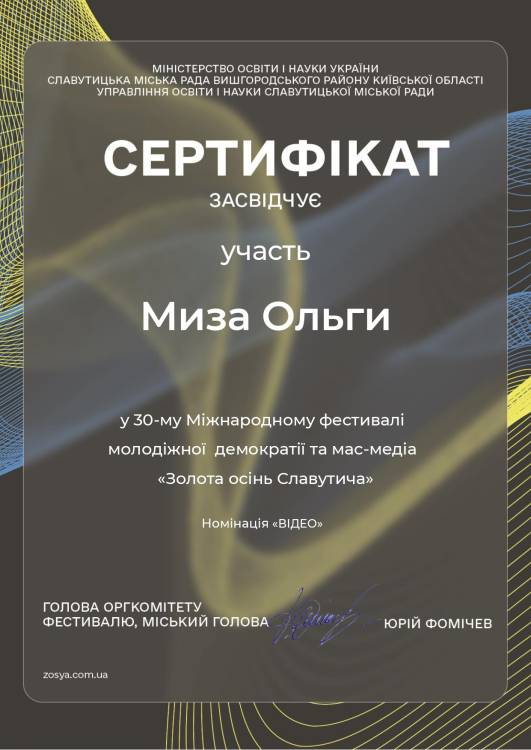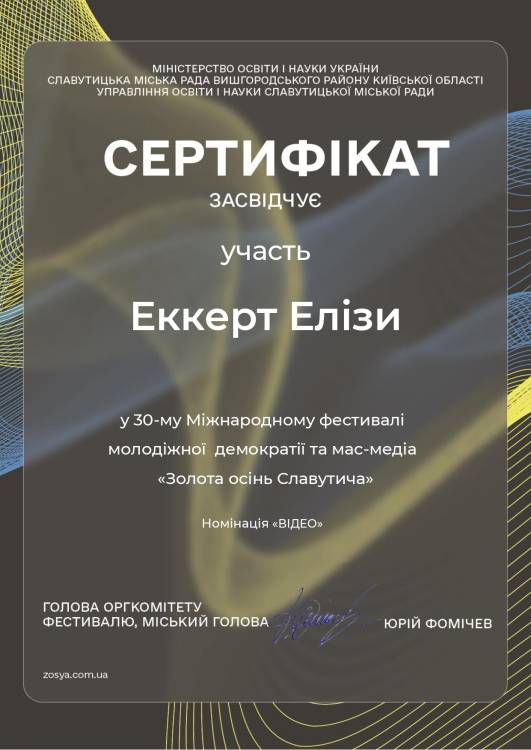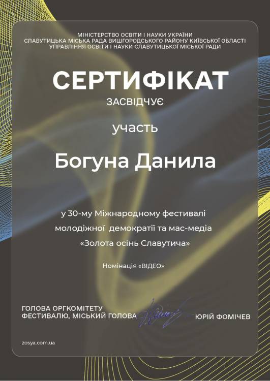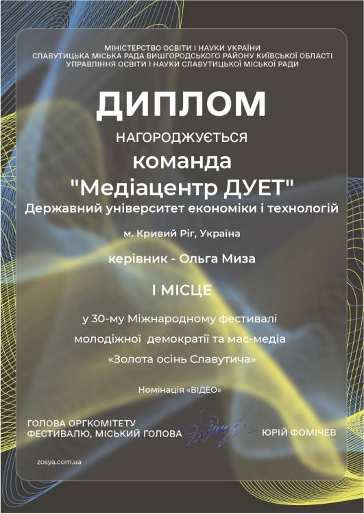 Команда «Медіацентр ДУЕТ» посіла перше місце в номінації «Відео» (вікова категорія «Б 17-24 роки») на Міжнародному фестивалі молодіжної демократії та мас-медіа «Золота осінь Славутича – 2023».