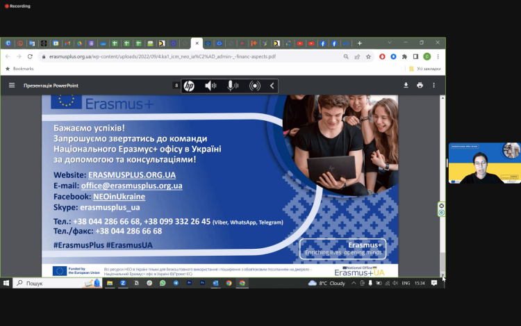 Як висновок було зазначено, що наразі основною задачею університету є практичне залучення учасників вебінару до проєктної діяльності в рамках програми Еразмус+.