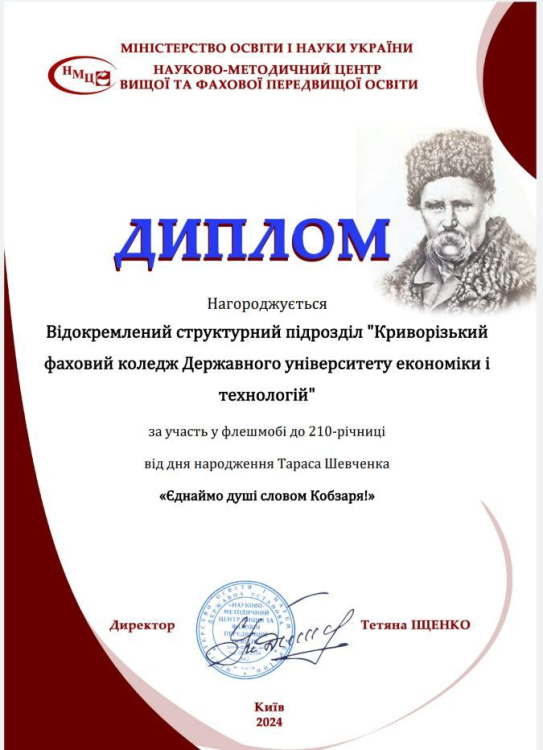 Завжди у березні Україна святкує День народження Тараса Шевченка, віддаючи шану його творчості та таланту. З 04.03.24р.по 09.03.24р. відбувся флешмоб "Єднаймо душі словом Кобзаря!", до якого долучилися і наші здобувачі освіти.