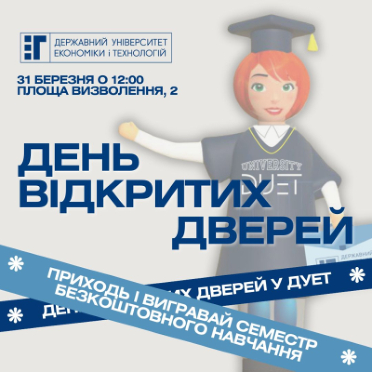 31 березня 2024 року – переводимо стрілки годинника на 1 годину вперед і поспішаємо на День відкритих дверей до Державного університету економіки і технологій!