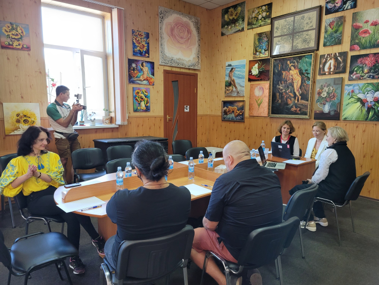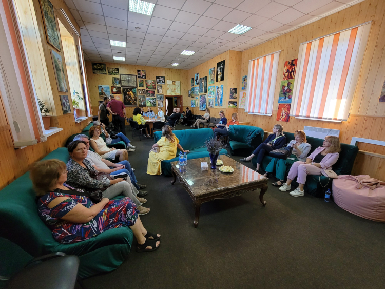 Студентки спеціальності «Менеджмент соціокультурної діяльності» отримали унікальну можливість не тільки взяти участь в обговоренні нагальних питань і викликів креативних індустрій України, а ще й бути організаторами заходу, екскурсоводами в інклюзивній залі, створеній власницею і кураторкою картинної галереї «ArtCraftOil» Світланою Ткаченко.