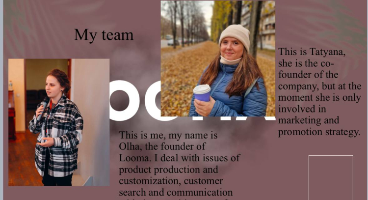 - Ольга Ренкас зі стартапом «LOOMA» (Державний університет економіки і технологій, Кривий Ріг, Україна)