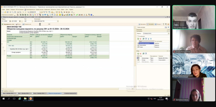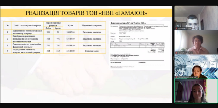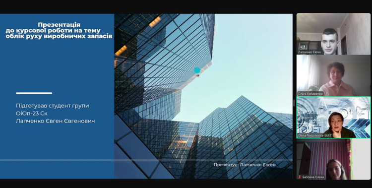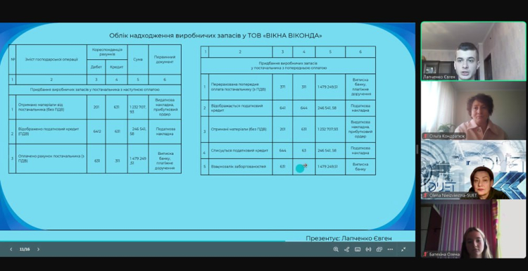 Здобувач Євген Лапченко захищав курсову роботу безпосередньо з власного робочого місця ТОВ «ВІКНА ВІКОНДА» та в режимі реального часу демонстрував роботу в прикладній програмі і пояснював облік руху виробничих запасів. Це було дуже актуально і пізнавально для всіх присутніх на захисті.