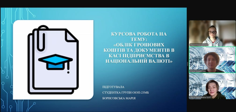 Нещодавно кафедрою фінансів і бухгалтерського обліку проведений захист курсових робіт здобувачів вищої освіти першого (бакалаврського) рівня за освітнім компонентом «Фінансовий облік активів» та початкового рівня (короткий цикл) за освітнім компонентом «Фінансовий облік активів і пасивів».