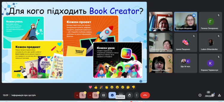- «Використання Book Creator для створення інтерактивних проєктів та електронних портфоліо викладачів та здобувачів освіти»,