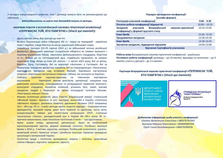 Запрошуємо взяти участь у IІ Всеукраїнській науково-практичній конференції «ПЕРЕМАГАЄ ТОЙ, ХТО ПАМ'ЯТАЄ»