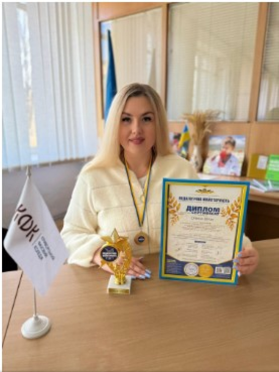 За підсумками фінального туру конкурсу Олена Шпак здобула перше місце у номінації «Методична розробка (професійна освіта)» з авторською роботою «Освітній квест «Економічна подорож світом».