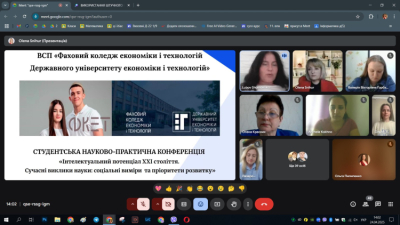 З метою підтримки обдарованої студентської молоді та створення умов для її творчого зростання, активізації науково-дослідної роботи здобувачів освіти, 24 квітня 2025 року у ВСП ФКЕТ ДУЕТ відбулася студентська науково-практична конференція «Інтелектуальний потенціал XXI століття. Сучасні виклики науки: соціальні виміри та пріоритети розвитку».
