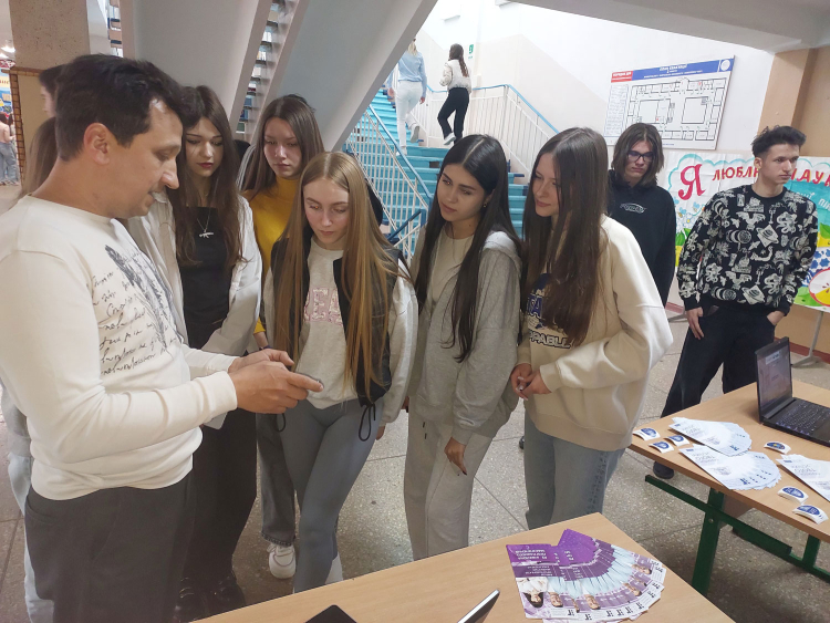 Студенти спеціальності «Інженерія програмного забезпечення» Янченко Мирослав (гр. ІПЗ-23-1) та Олена Браворіченко (гр. ІПЗ-23-1) розповили майбутнім студентам про все різноманіття студентського життя, докладно зупинившись на своїх заняттях у гуртку. Керівники гуртку Ходукін М.А. та Медведєва Д.Г. продемонстрували роботу деяких стендів, що були сконструйовані та зібрані студентами на заняттях.