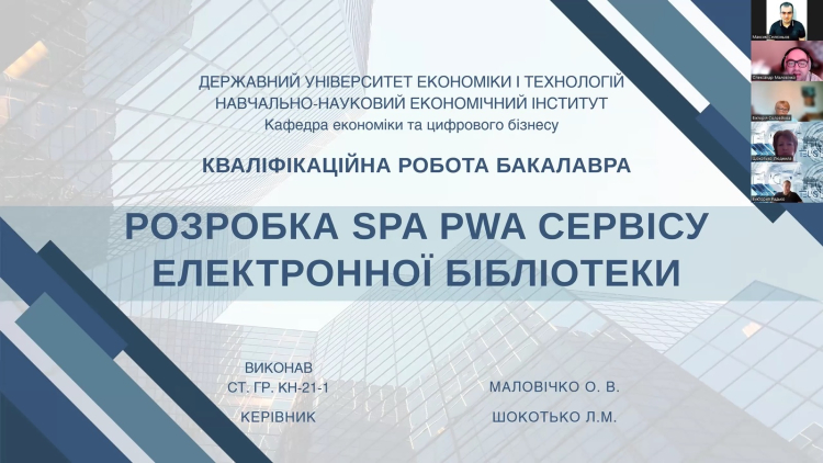 Тому важливою подією став захист бакалаврських кваліфікаційних робіт здобувачів за спеціальністю 122 «Комп’ютерні науки», які навчалися за освітньо-професійною програмою «DATA SCIENCE». Цей випуск - символ завершення важливого етапу у становленні освітньої традиції з підготовки сучасних ІТ-фахівців на кафедрі економіки та цифрового бізнесу.