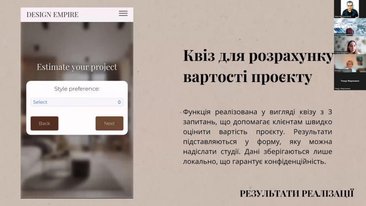 Екзаменаційна комісія високо оцінила рівень підготовки здобувачів, актуальність обраних тем, технічну реалізацію та вміння обґрунтуватиреалізовані рішення. При цьому окремо хочеться виділити здобувачів, які претендують на отримання дипломів з відзнакою.