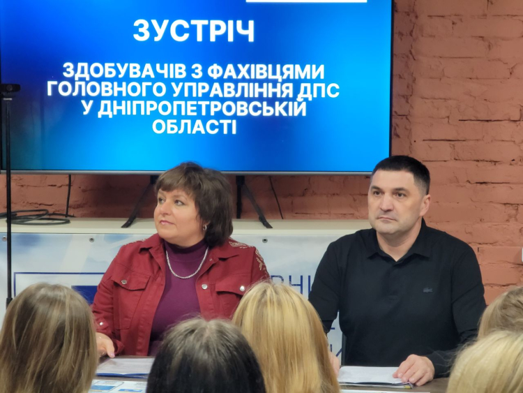Зустріч розпочалася в Державному університеті економіки і технологій. Здобувачі заслухали Євгенія Кретова, начальника відділу податків і зборів з юридичних осіб у галузях будівництва, добувної промисловості, ремонту та технічного обслуговування машин і харчової промисловості Головного управління ДПС у Дніпропетровській області. Він ознайомив студентів із завданнями та функціями податкової служби, розповів про діяльність офісів податкових консультантів і наголосив на важливості податкової культури у професійній діяльності майбутніх фахівців.