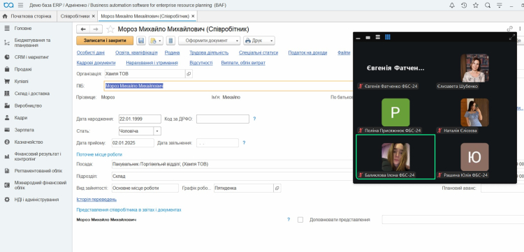 - Тема дня: Рух Кадрів у BAS ERP.
