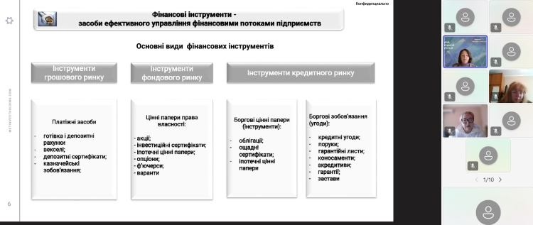 Також спікерки детально пояснили принципи роботи інструментів грошового ринку – векселів, депозитних сертифікатів, акредитивів. Ці знання особливо актуальні для тих, хто вивчає дисципліни фінансового циклу, зокрема таких обов’язкових освітніх компонентів як фінанси підприємств, фінансовий аналіз, фондовий ринок, банківська справа, страхування, фінансовий облік активів, організація обліку і контролю в корпораціях. Студенти мали змогу краще зрозуміти, як функціонують цінні папери, зокрема боргові інструменти, що є основою сучасного фондового ринку. Цікавим цей вебінар був і для майбутніх бухгалтерів, оскільки вони змогли зрозуміти особливості та механізм використання того чи іншого фінансового інструменту.