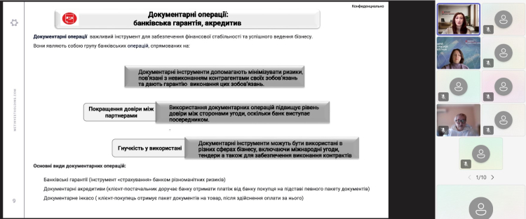 Під час вебінару-практикуму фахівчині з Єдиного розрахункового центру ТОВ «Метінвест Бізнес Сервіс» поділилися реальними кейсами використання фінансових інструментів у бізнесі. Студенти дізналися, як працюють: