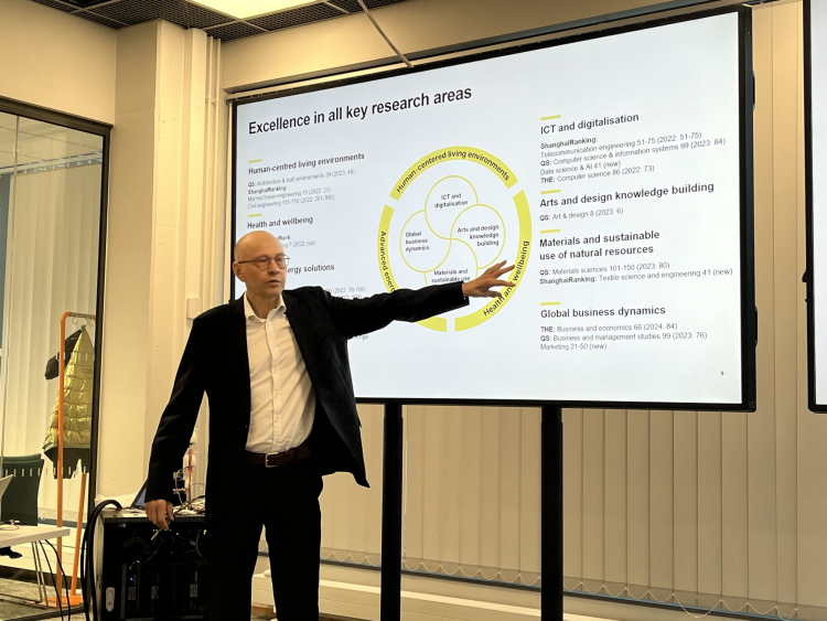 Робоча програма розпочалася з зустрічі з Janne Laine, Vice President Innovations Aalto University. Під час зустрічі були представлені стратегічні напрями розвитку інноваційного середовища університету, механізми підтримки досліджень, моделі комерціалізації результатів наукової діяльності та системи співпраці університету з промисловими партнерами. Для української делегації особливо цінними стали практики управління інноваціями, що дають змогу поєднувати академічну експертизу з потребами бізнесу та суспільства, а також підходи до формування команд, здатних створювати технологічні продукти світового рівня.