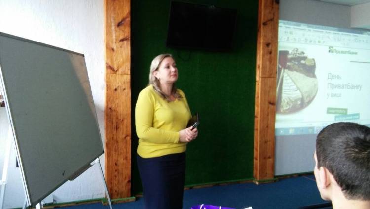 Вона ознайомила студентів 1-2 курсів факультету економіки та управління з роботою банку та послугами, які він надає клієнтам. Представив гостю декан факультету економіки та управління доцент Руслан Дутчак.
