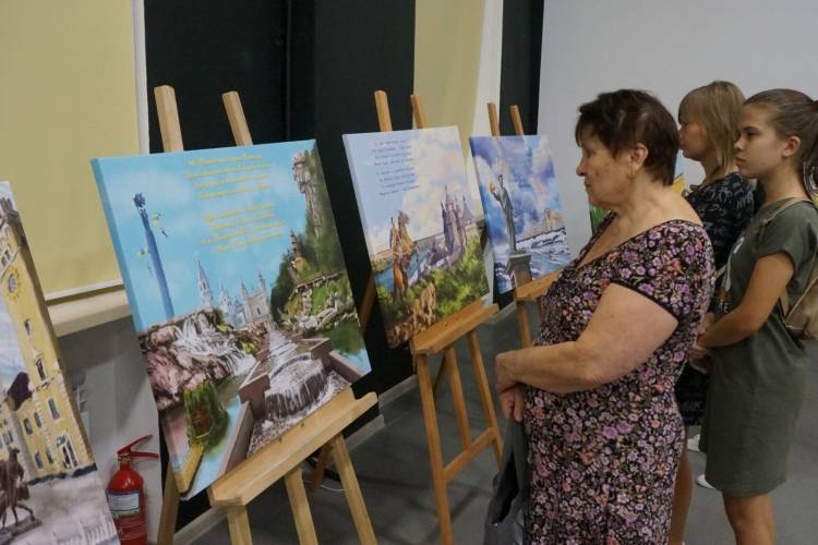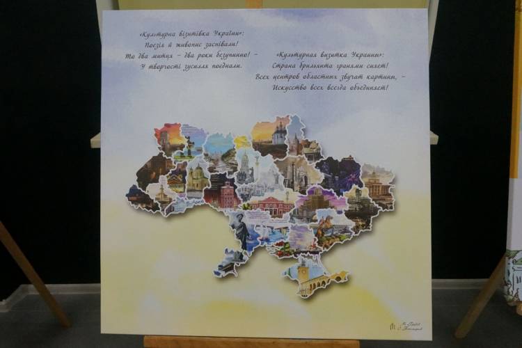 На виставці представлено 27 полотен із зображеннями видатних місць усіх регіонів держави, а також окремо міст Кривого Рогу та Сімферополя й колажу карти України. Усі картини супроводжуються віршами українською і російською мовами.