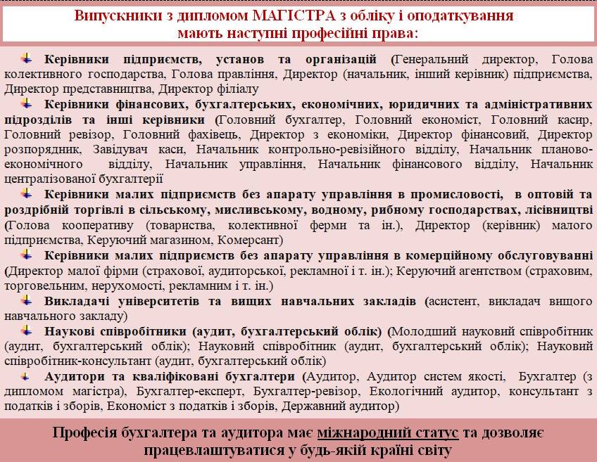 Широкі професійні можливості випускників спеціальності «Обліку і оподаткування»: