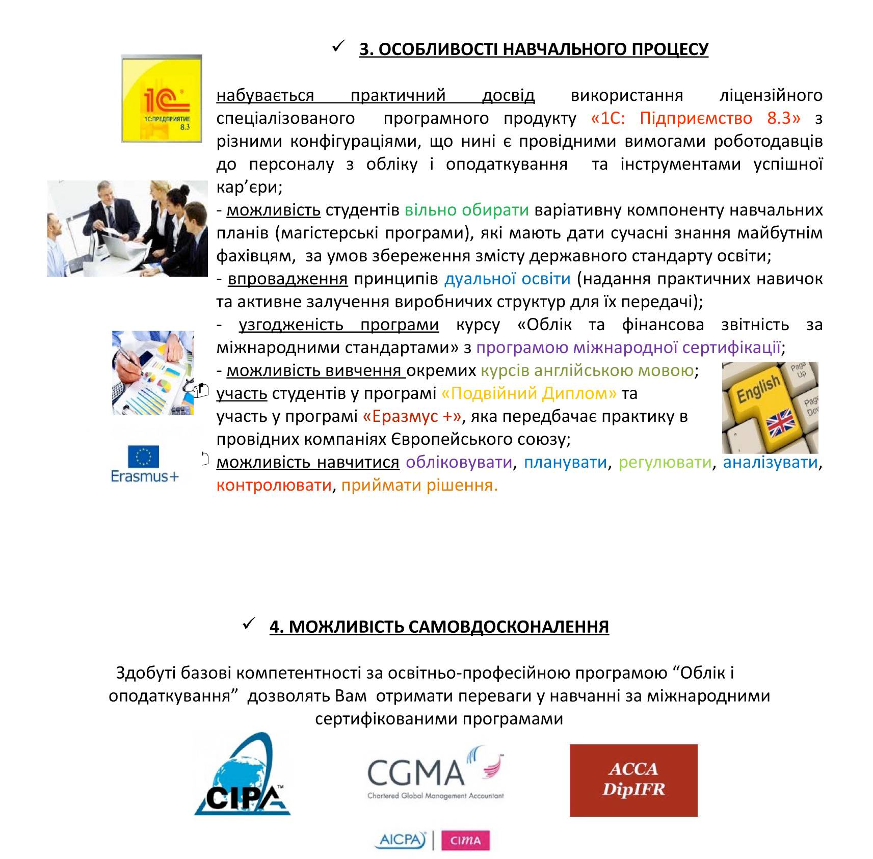 отримання освіти за спеціальністю «Облік і оподаткування» дозволить успішно претендувати на всі без виключення посади, де є вимога мати вищу економічну освіту;