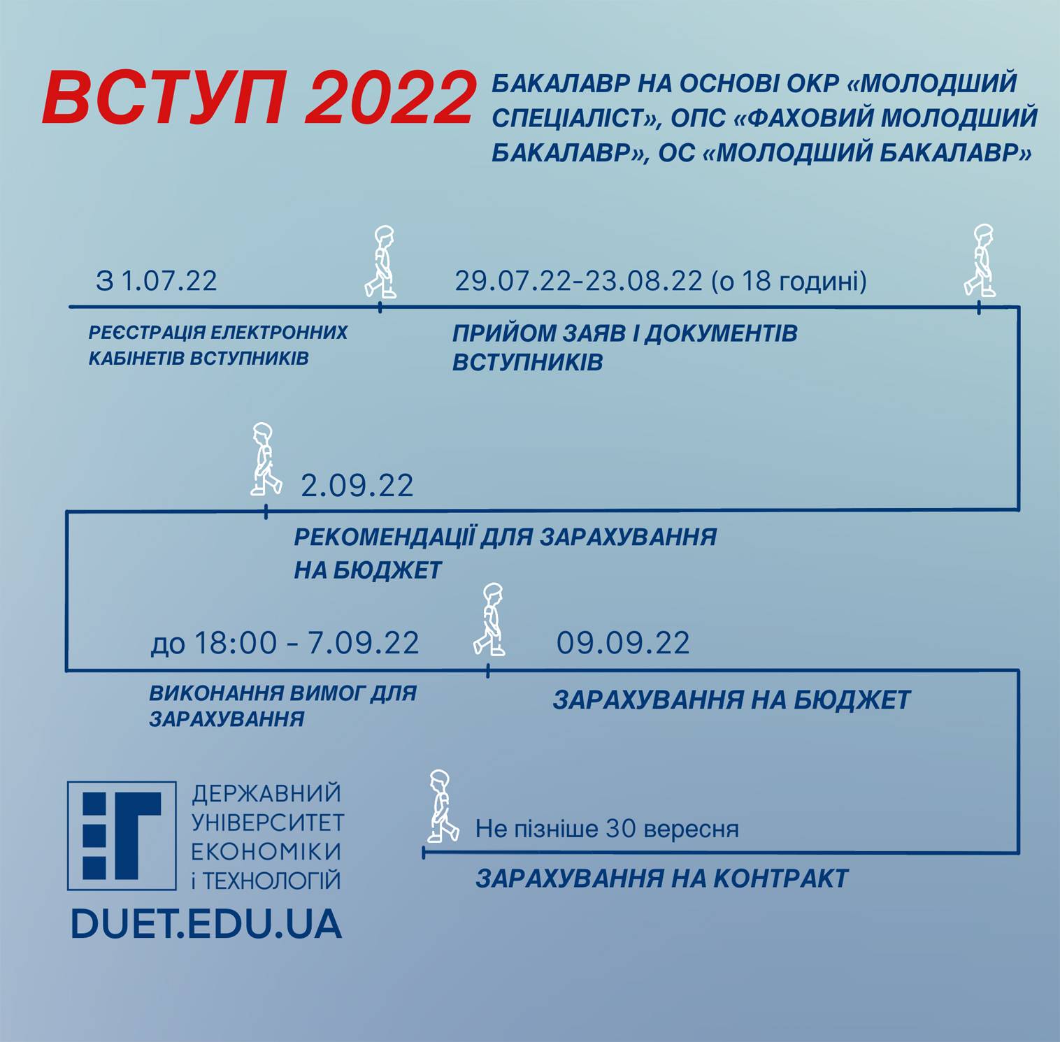 Календар вступу для вступників на основі повної загальної середньої освіти та освітньо-професійного ступеня фахового молодшого бакалавра (освітньо-кваліфікаційного рівня молодшого спеціаліста, ступеня вищої освіти молодшого бакалавра) для здобуття ступеня бакалавра