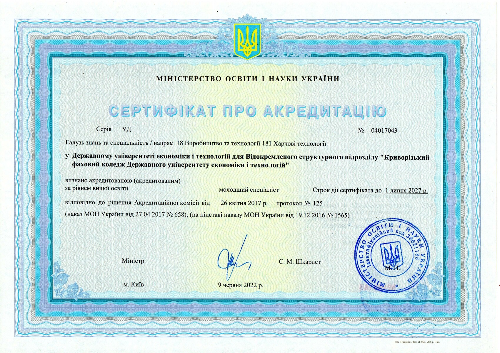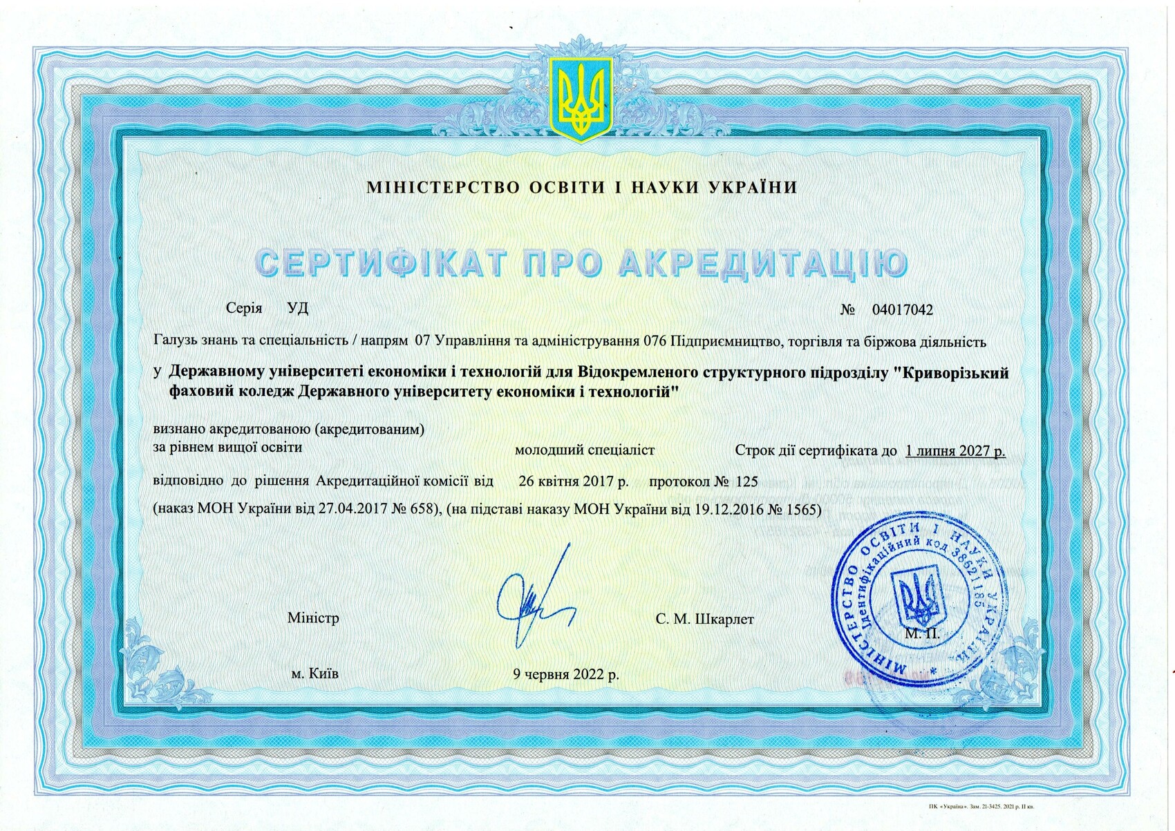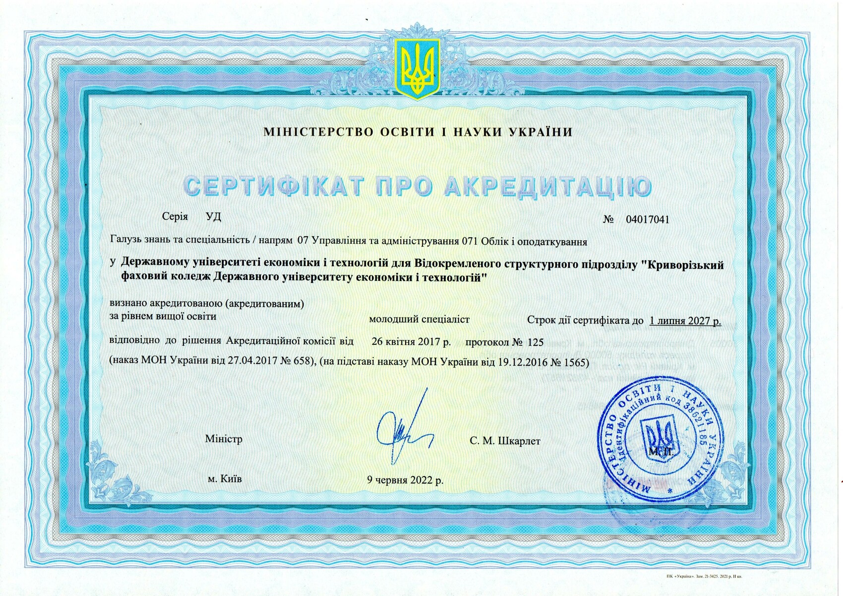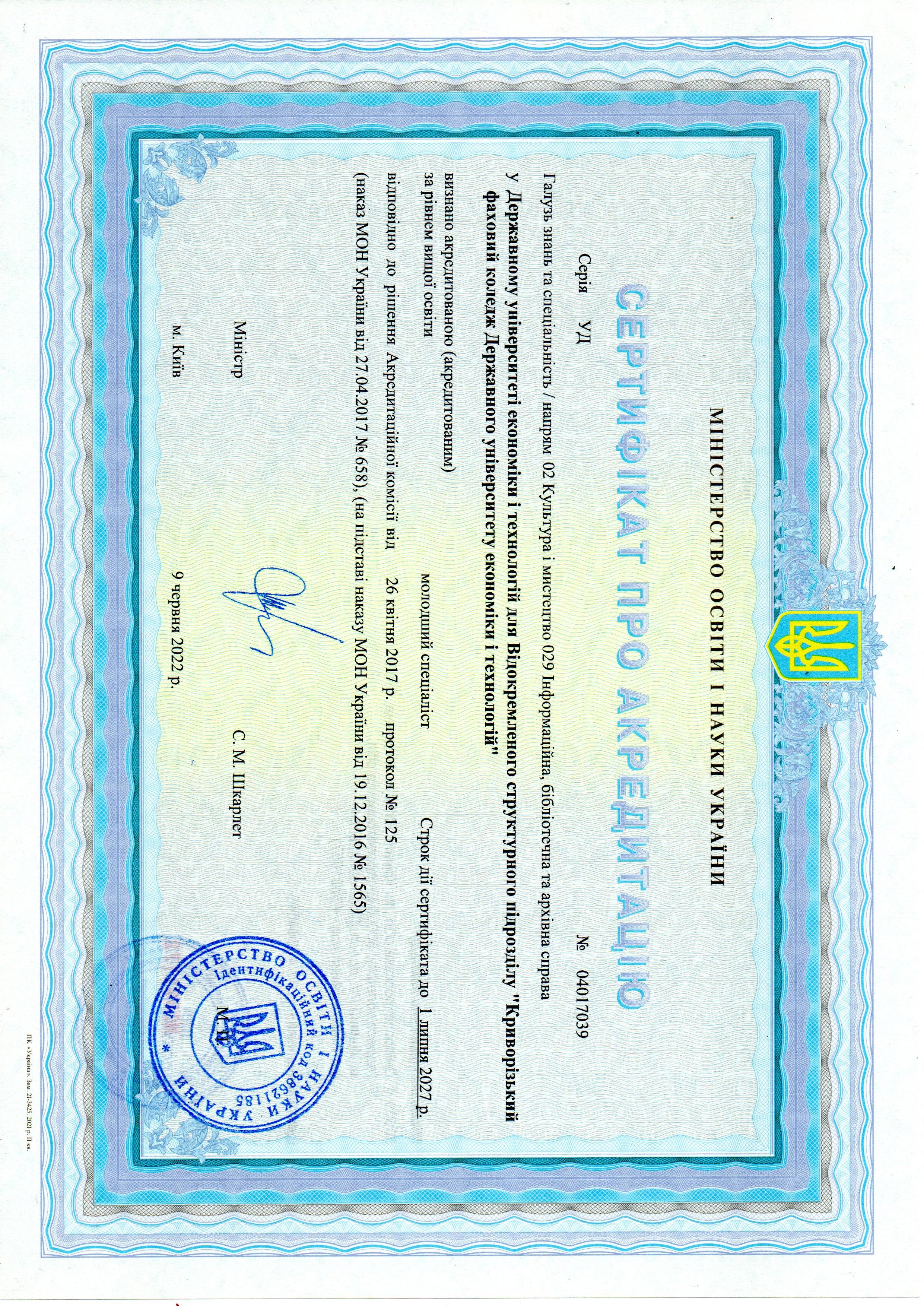 Сертифікати про акредитацію: