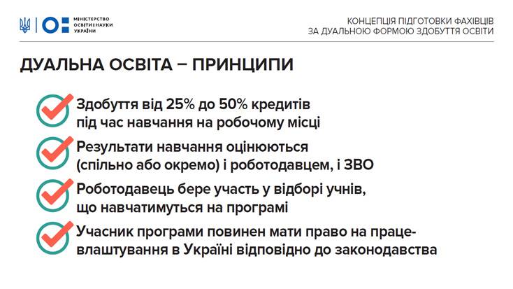 Дуальна форма здобуття освіти передбачає навчання на робочому місці з виконанням посадових обов’язків відповідно до трудового договору.