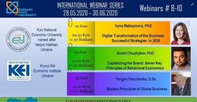 Київський національний економічний університет імені Вадима Гетьмана, Криворізький економічний інститут ДВНЗ "КНЕУ імені Вадима Гетьмана" and Bukhara State University kindly invites to join a series of lectures to be held in terms of collaboration for students and academic staff of these three higher educational institutions!