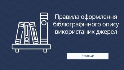 28 грудня бібліотека Державного університету економіки і технологій провела вебінар «Правила оформлення бібліографічного опису використаних джерел». Було наведено типові приклади описування документів різних видів: одно- і багатотомних; неперіодичних, періодичних, серіальних і продовжуваних видань; моновидань і збірників; документів на різних носіях інформації (друкованих, електронних), а також складових частин документів з дотриманням вимог стандартів, чинних в Україні станом на 01 січня 2021 р. Детально проаналізовано приклади оформлення бібліографічного опису у списку джерел, який наводять у курсовій, кваліфікаційній, магістерській роботах. Бібліотека перед собою ставила мету – розглянути теоретичні і практичні питання бібліографічного опису документа, а також подати в компактній та зручній формі скорочені правила і типові зразки бібліографічного опису різних видів видань.