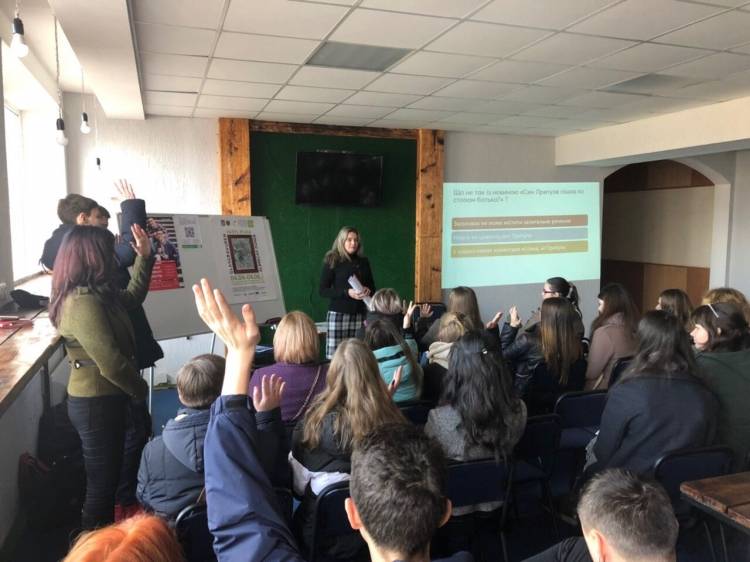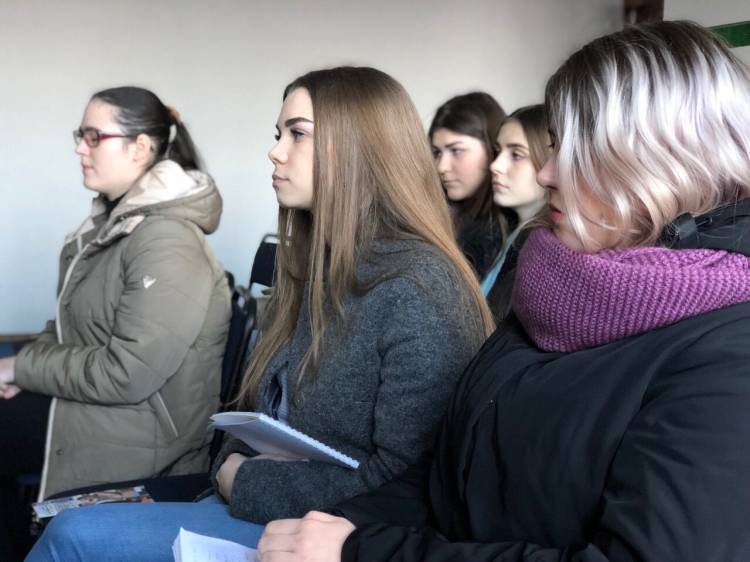 — Ми презентували, а точніше сказати, рекламували нашу спеціальність «Міжнародні відносини, суспільні комунікації і регіональні студії», — розповідає першокурсниця КЕІ Дарина Попова. — Запитували учнів, чи хочуть вони вступати до нас після закінчення середнього навчального закладу і запрошували їх на навчання до Криворізького економічного інституту. Я і мої одногрупники розповіли їм детально, як ми навчаємось, які заходи у нас проводяться і які іноземні мови ми вивчаємо. Було досить цікаво спілкуватися з учнями.