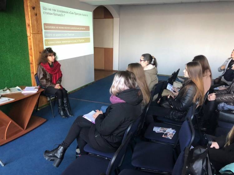 Були тут представники із криворізької молодіжної ліги журналістів. Провела захід доцент кафедри іноземних та української мов Олена Миколаївна Гончаренко.