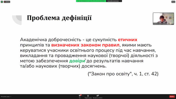 Аспіранти Маринюк Іван (МН-23ДФ) та Потьомкін Ігор (ЕК-23 ДФ) 16 травня о 14:00 прослухали Вебінар «Проблеми встановлення академічного плагіату в дослідженнях: кейси Комітету з етики Національного агентства» (спікер – Олена Єременко, заступник голови Національного агентства із забезпечення якості вищої освіти, професор кафедри української літератури, компаративістики і грінченкознавства Київського столичного університету імені Бориса Грінченка).