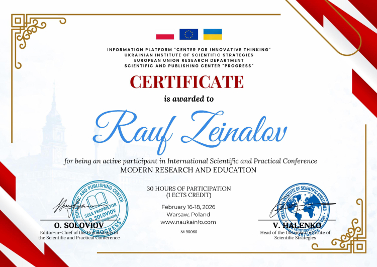 (PhD). Особливо хочемо відзначити аспірантів другого курсу - Зейналова Рауфа, Доценка Володимира, Качуру Кирила та першого курсу - Рябцева Романа, які проявили високу активність у науково-дослідній роботі: подали до друку статті до журналів категорії «Б», взяли участь у чотирьох