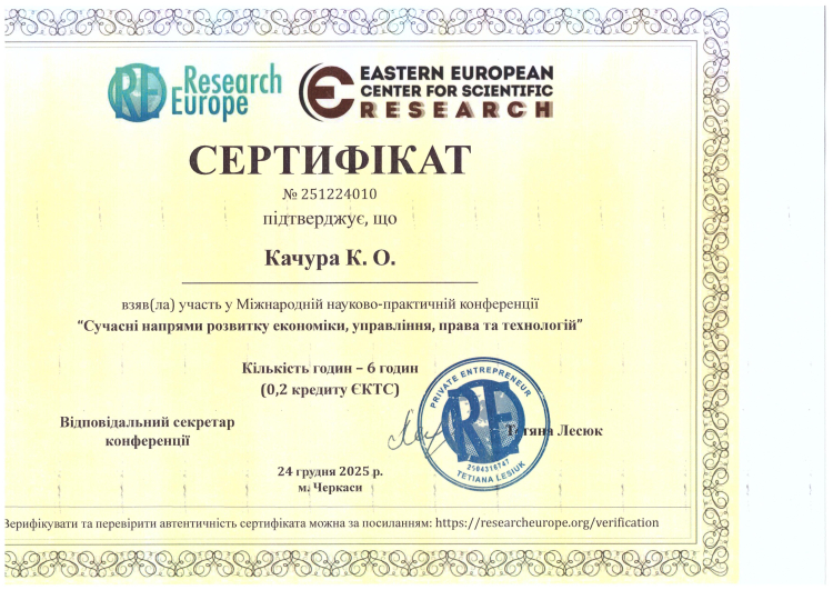 міжнародних і двох всеукраїнських конференціях. Ваші досягнення — це приклад наполегливості, професійного зростання та натхнення для всієї спільноти молодих вчених ДУЕТ.