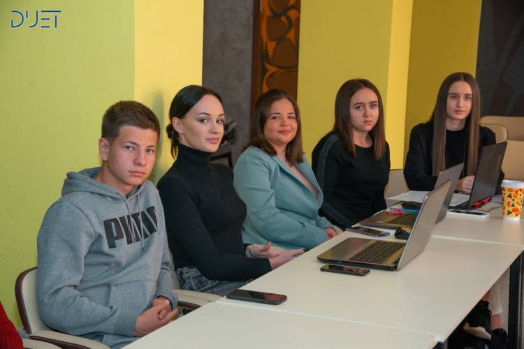 Студенти спеціальності «Міжнародні відносини, суспільні комунікації та регіональні студії» ДУЕТ стали активними учасниками конференції, презентувавши результати власних досліджень з проблем міжкультурної комунікації, тенденцій розвитку інформаційного простору та впливу на нього сучасних технологій та ін. Серед доповідачів були студенти усіх курсів спеціальності, серед яких варто відзначити роботи першокурсників Світлани Новікової, Маргарити Ткачової, Марії Горностаєвої, Поліни Різник, доповіді яких не поступалися актуальністю та ґрунтовністю висновків дослідженням студентів старших курсів.