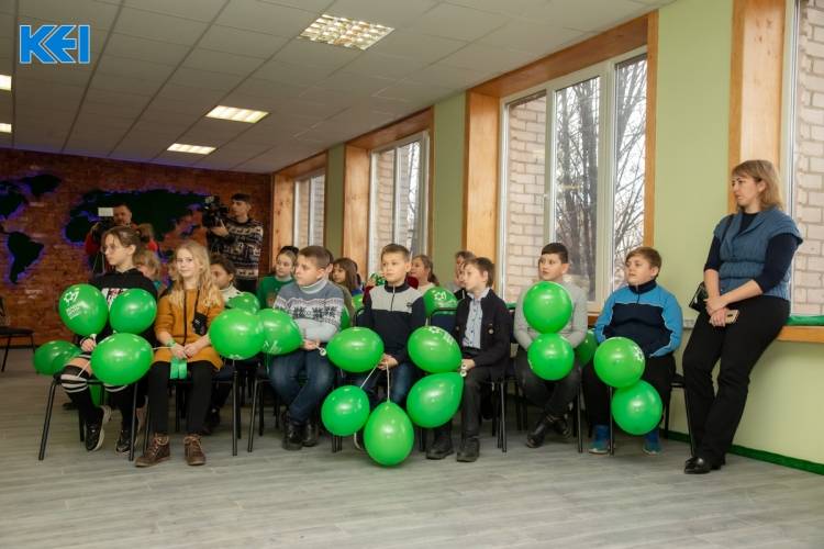 Під урочисті звуки музики зелену стрічку перерізали гості: керівник представництва ГС "Зелений центр" Дмитро Мурашко і керівник ГО "Криворізька фундація майбутнього" Олена Лещенко і директор Криворізького економічного інституту професор А.В. Шайкан.