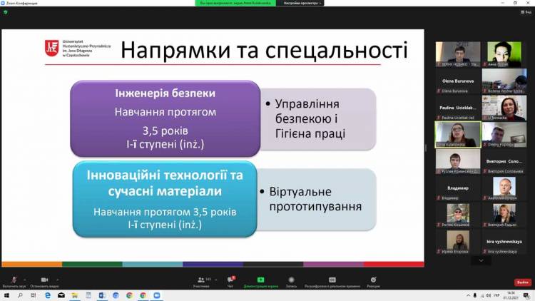 01 грудня 2021 року відбувся он-лайн вебінар для студентів Державного університету економіки і технологій щодо програми семестрового академічного обміну в формі студентського стажування в Гуманітарно-Природничому Університеті імені Яна Длугоша в Ченстохові (UJD).